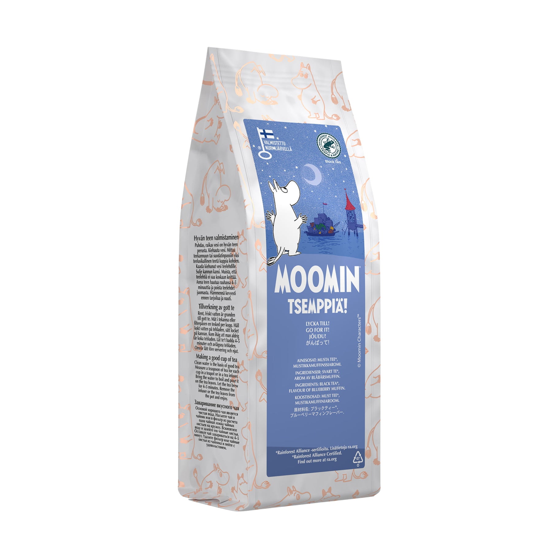 Tsemppiä! Gambare! Go for it! Kämpa på! Musta tee maustettuna mustikkamuffinssin aromilla.